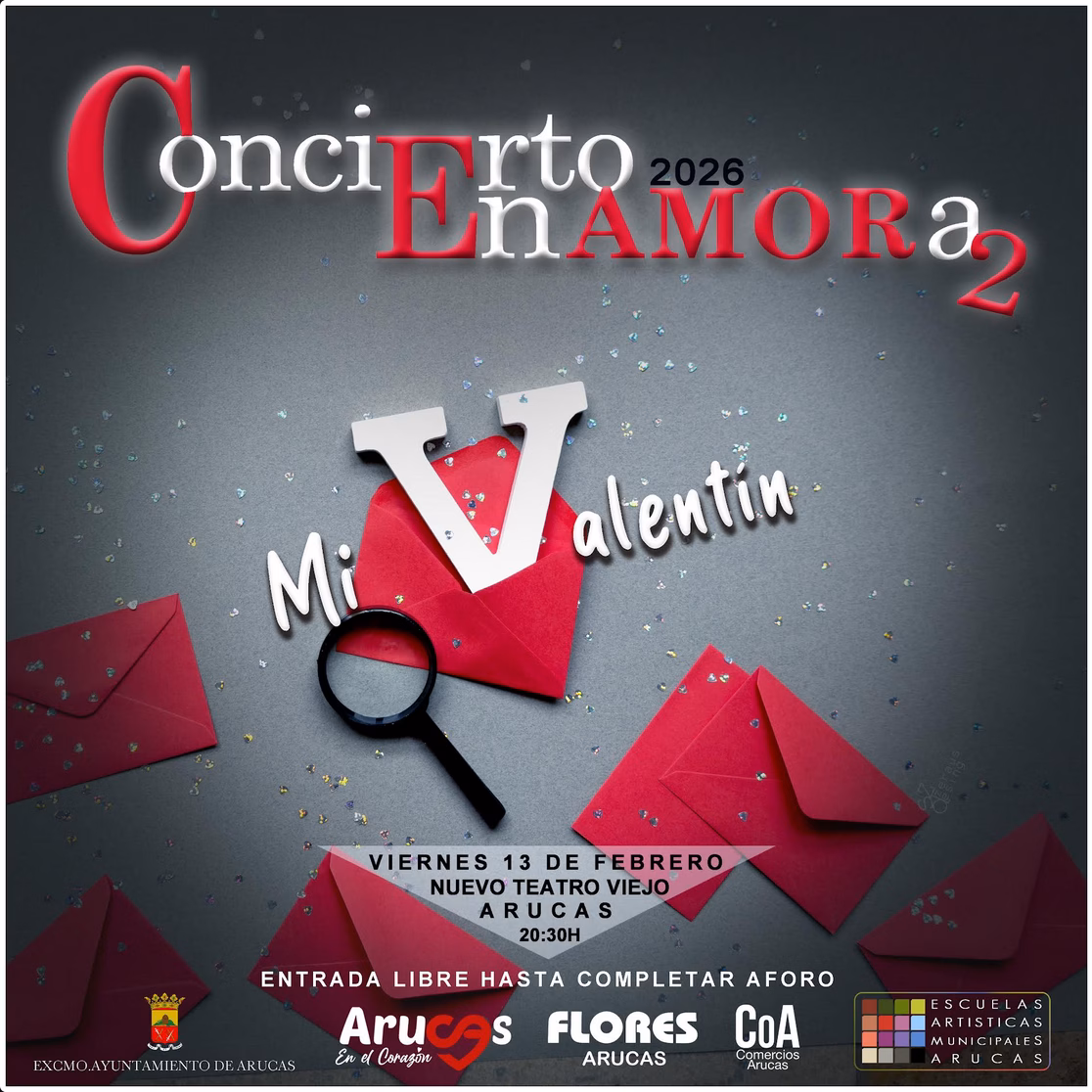 Bajo el título “Mi Valentín”, descubrirás, entre acertijos y una puesta en escena muy cuidada, quién se llevará el corazón de esta edición. El guion es obra de Sofía García Alemán, alumna de Canto, mostrando el talento creativo que surge desde las Escuelas Artísticas Municipales de Arucas.